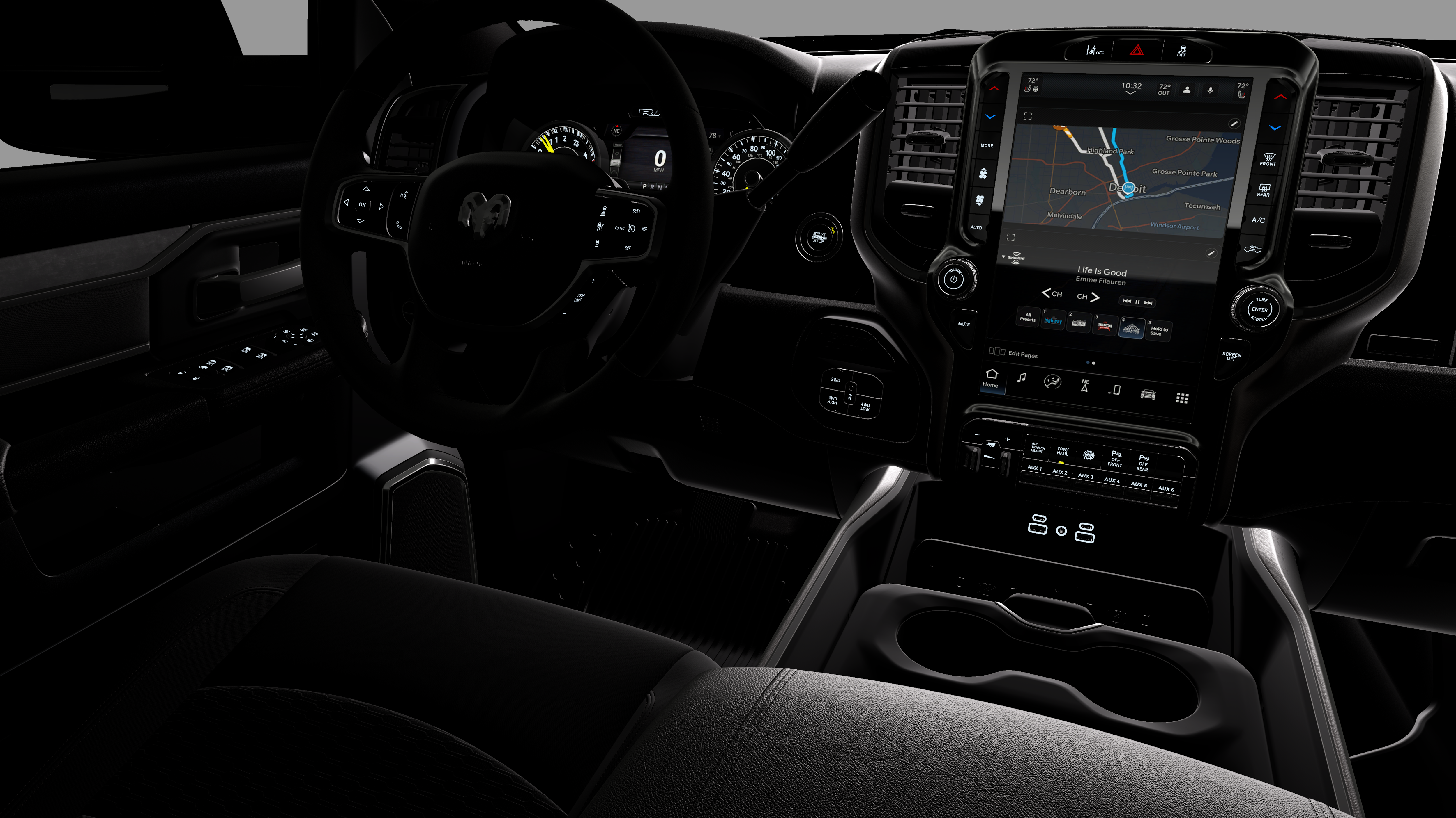 - Radio w/Seek-Scan, Clock, Speed Compensated Volume Control, Aux Audio Input Jack, Voice Activation, Radio Data System and Uconnect External Memory Control